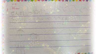 ブログ うれしいです♪ 先日のレッスンで、習い始めて間もない年中さんの女の子が、なにやら書いてきてくれたとのことで、見せてくれました♪読んでみて、うれしすぎて、思わずパチリと撮らせて頂きました♪覚えた字を一生懸命使って書いて... 2024.12.13 ブログ